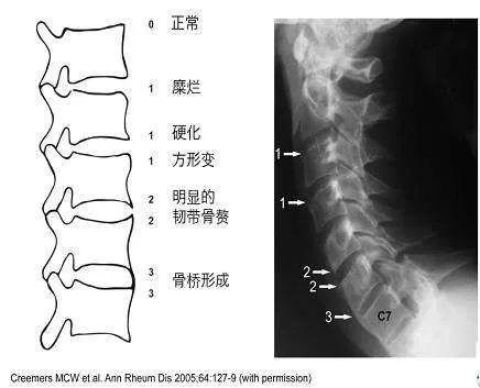 我们都知道,人的脊柱由椎体组成,椎体间存在缝隙,由柔韧的韧带连接,这也是脊柱能灵活运动弯曲的奥秘所在。韧带和上下椎体的连接点叫做附着点,当它反复发炎就会引起骨质破坏,而人体就会主动修复这些破坏的骨质,这个过程中,新长出来的骨头如果超范围生长,就会使柔软的韧带被骨化,形成坚硬的骨刺。相邻椎体的骨刺融合连成骨桥,椎体之间相当于被“绑”在一起,没有空隙,脊柱就失去了灵活运动的空间,造成脊柱强直,这是种不可逆的骨结构损伤。