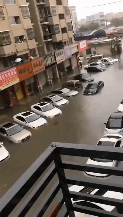 台风凶猛!温州多地被淹 车主排队“渡河”