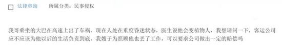 我哥乘坐的大巴在高速上出了车祸,现在人处在重度昏迷状态,医生说他会变植物人,我想请问一下,客运公司应不应该为他以后的生活负责到底,我嫂子为照顾他也丟了工作,可以要求公司做出一定的赔偿吗?
