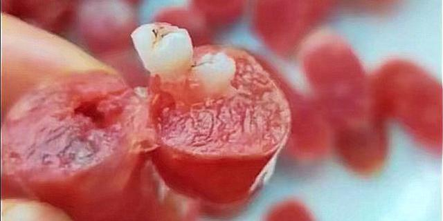 女子吃香肠发现两颗牙齿镶嵌在内,网友:像人牙