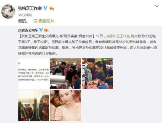 然而尴尬的是,张柏芝工作室在当时曝出传闻的时候,就第一时间进行了澄清辟谣,可以看到张柏芝工作室否认了孙东海就是三胎生父的谣言。