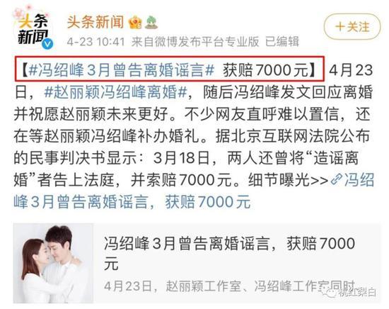 北京互联网法院判定冯威 ( 冯绍峰 ) 胜诉,获赔 7000 块。