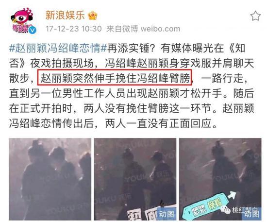 12 月,俩人一块拍了《知否》,赵丽颖在散步的时候,突然挽住冯绍峰。