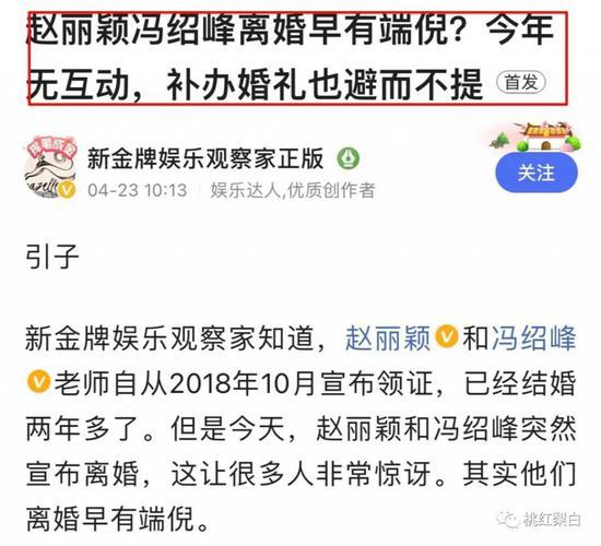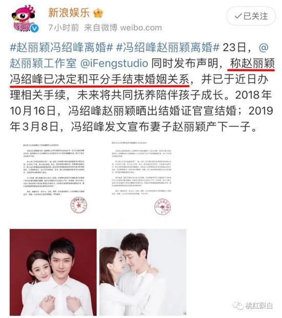 今天上午 10 点,冯绍峰和赵丽颖工作室突然官宣:俩人离婚了。
