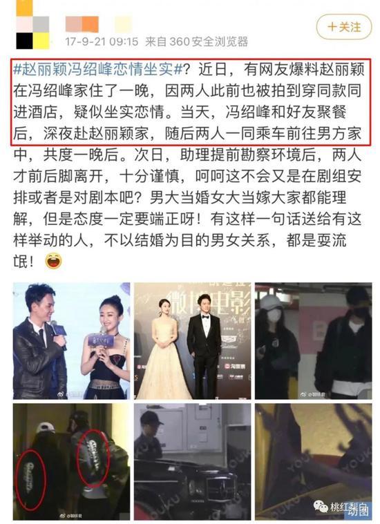 2017 年 9 月,有网友爆料赵丽颖在冯绍峰家过夜。