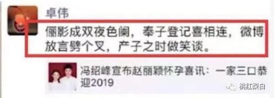 就在他俩官宣前两个月,卓伟曾在朋友圈爆料,赵丽颖已经怀孕。