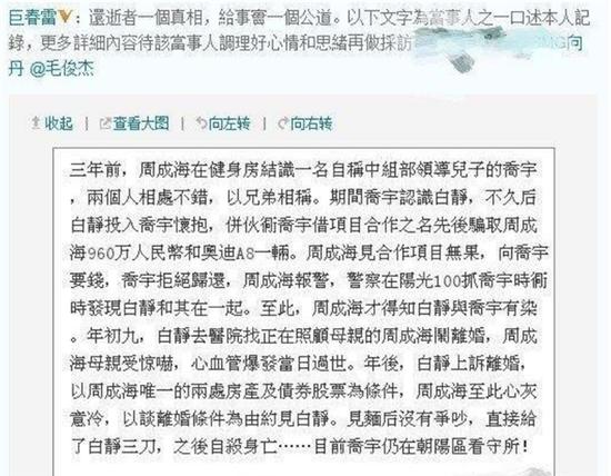 4月24日,有娱记曝光女演员白静被害案的详细内情,引发网友热议。