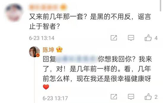 陈坤的这种态度不仅引发了粉丝的不满,也受到了网友的质疑,“所以为什么不说清楚呢”、“澄清一下很难吗”,“不否认就是承认了呗”,不少网友认为他不澄清就是默认了。