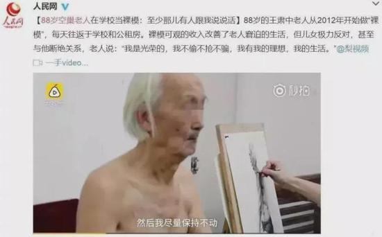裸模本来就是个小众职业,八十多岁的裸模更是少之又少,王肃中成为新闻是理所当然的事。
