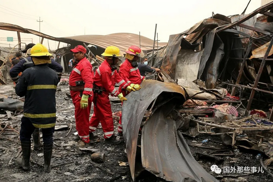 目击火灾整个过程的艾哈迈德·雷桑说:“火灾发生时每个人都逃跑了,包括工人甚至警察,几分钟后发生了爆炸。”他说,消防员在一小时后到达。