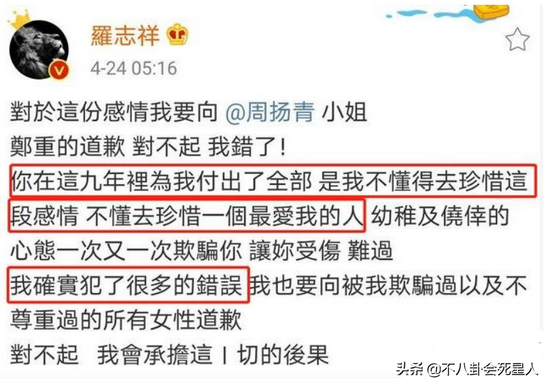 当初以为他会就此退圈,不过罗志祥依然照常更新动态,期间还向周扬青道歉,各种复出动作不断。