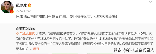 如今范冰冰的生活事业已经完全恢复状态了,并且在公益上范冰冰从来没落下,河南暴雨期间,范冰冰连续几天为暴雨转发微博发声,从态度来看,倒是比郑爽真诚了很多。