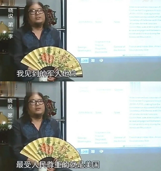 高晓松还讲到:“我见过的军人地位,最受人们尊崇的就是美国。”
