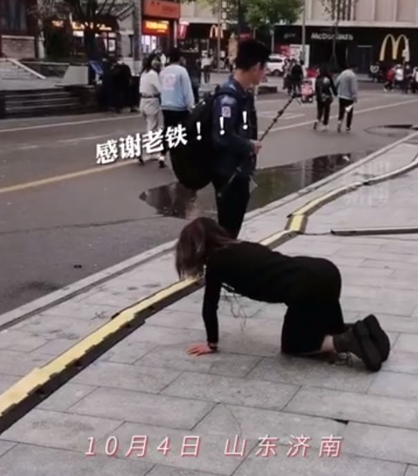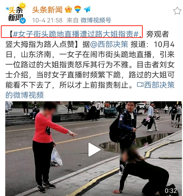 不怪一路过大姐实在看不下去,上前怒怼制止了跪地的女主播:“国庆节你在这儿跪谁呢,注意点影响。”
