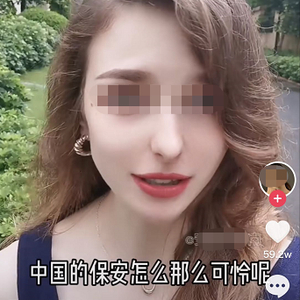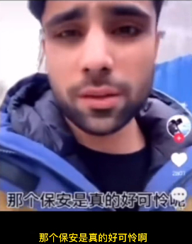 另一边,一大胡子歪果仁也正好遇见保安,正好被她妈同情中国保安好可怜。