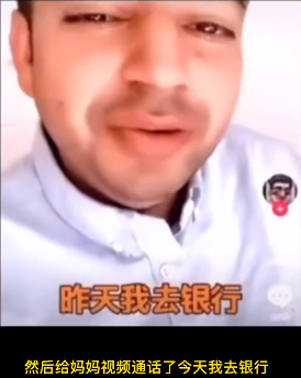 这边,一外国小哥也正好和妈妈打视频,正好路过一家银行。