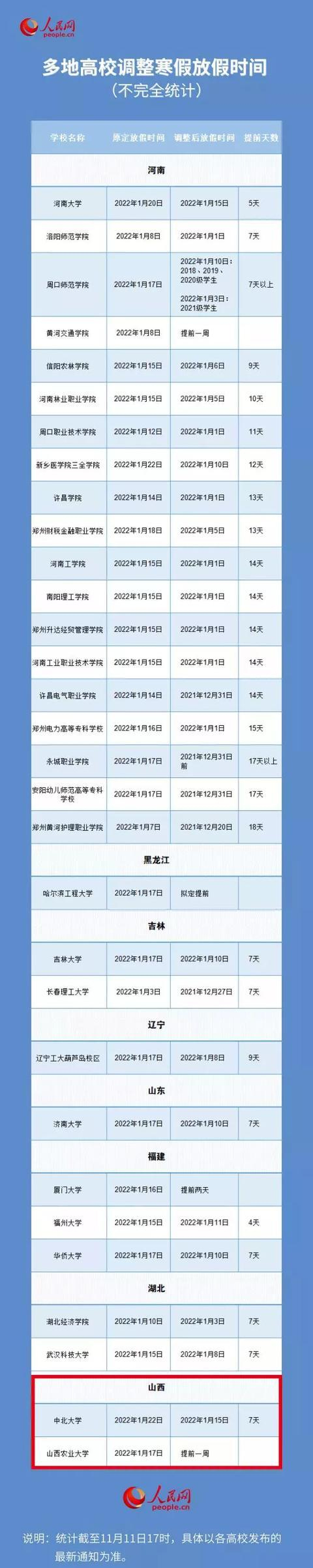 陆续调整寒假放假时间