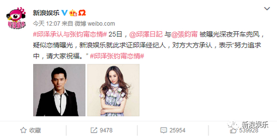台媒拍到邱泽和张钧甯一起开车外出,疑似恋情曝光。张钧甯那边还没有回复,邱泽表示:努力追求中,请大家祝福!