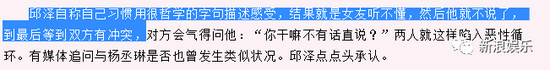 关于这段感情,邱泽也是有回应的,当年邱泽说女友(杨丞琳)听不懂他用很哲学的字句描述自己的感受,于是他选择不说,谁知这样反倒酿成矛盾。