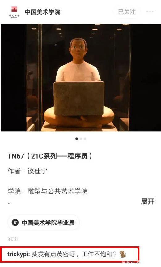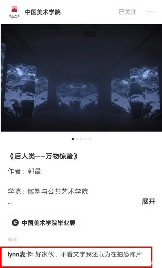 反正狂人看完那些咸鱼里善于吐槽的“牛鬼蛇神”,觉得中国美院真是挺敢的。