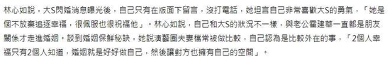 今日,恰好林心如在大 S 再婚的第二天出席品牌活动,有媒体询问她如何看待此事,林心如称,自己只有给大 S 留言祝福,但并没有打电话。