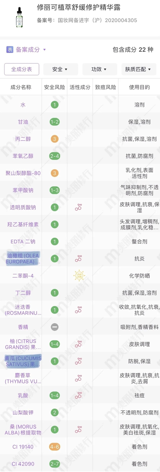 修丽可还加入不少植物提取物,比如橄榄叶提取物和黄瓜果提取物,就可以舒缓肌肤,改善发红的情况,对于新生的痘印很有一手,不过在黑色的陈年痘印面前似乎也没什么办法。