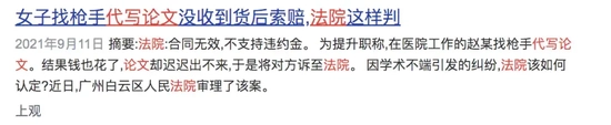 小张的经历并不是个例。据新华网消息,记者在中国裁判文书网以“论文代写”为关键词检索,发现 近3年来有20个相关案件的裁判文书。 对于代写合同,法院的判决 多为“违背公序良俗,协议无效”。
