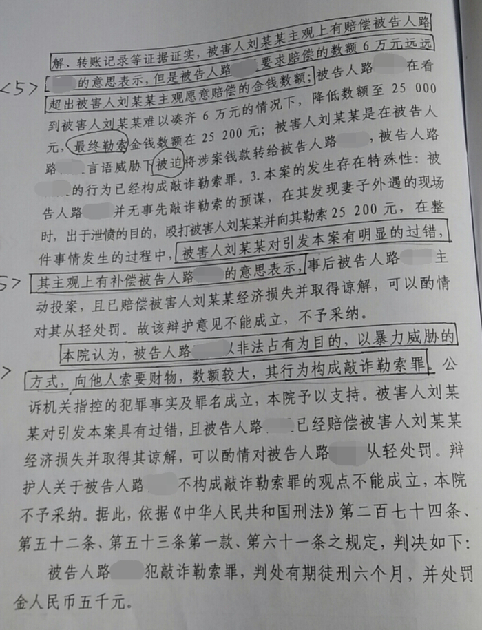 妻子偷情被发现 丈夫收情夫2.5万“主动赔偿”反因敲诈勒索获刑
