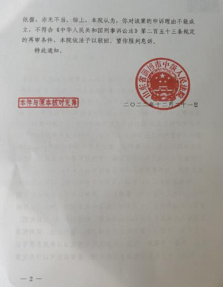12月24日,潇湘晨报记者从路某某家属处获悉,淄博市中级人民法院近日驳回了路某某的再审申诉,认为路某某对该案的申诉理由不能成立,不符合《中华人民共和国刑事诉讼法》第二百五十三条规定的再审条件,依法予以驳回。