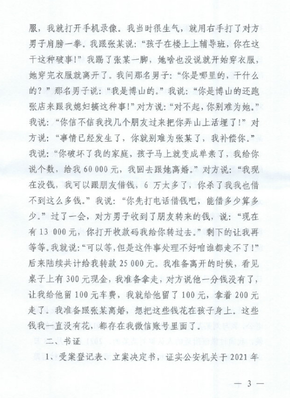 撞见这一幕后,路某某曾打了对方男子一拳,对方曾提出要“补偿”他,路某某提出6万经济赔偿,对方通过向朋友借钱后,分三次转给他2.5万元。