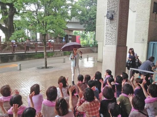 · 粉丝们在宝塚大剧院前蹲点追星,男役(撑伞者)尤其受欢迎。