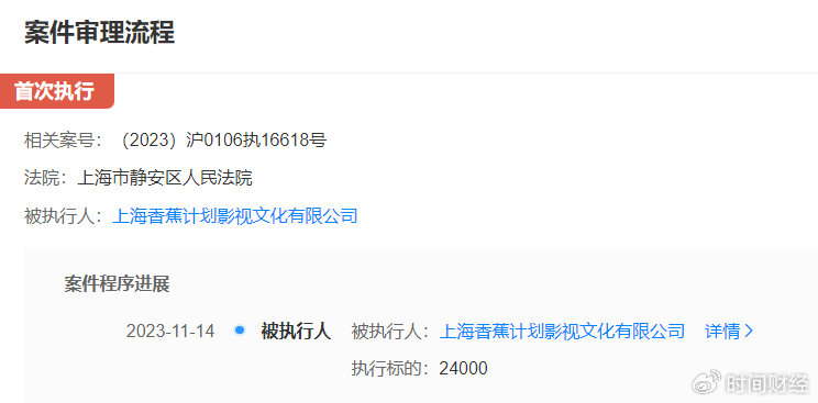 天眼查数据显示,近日,上海香蕉计划影视文化有限公司新增一则被执行人信息,执行标的为2.4万元,执行法院为上海市静安区人民法院。通过股权穿透后显示,王思聪为该公司的实际控制人,持股87.13%,同时担任该公司监事。