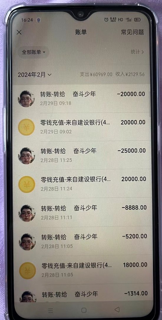 但丽告诉记者:“听办案民警说,凶手落网后交代说二妹死于3月18日,但我们怀疑,二妹在2月底就已经遇害了。因为,此后的一段时间,二妹的微信有多笔转账:2月28日,支付宝转款800元;2月28日-29日,微信分五次转款60402元;3月3日-18日,微信分四次转款34000元。这些钱都转到一个叫庄某的账户。”