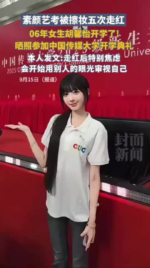 素颜艺考被擦妆五次走红,胡馨怡参加中国传媒大学开学典礼