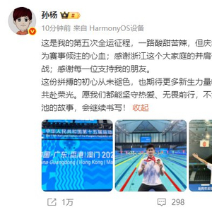 孙杨发文告别,期待更多新生力量崛起