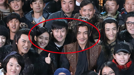 从曝光的照片看,刘恺威和王鸥仍旧是一身剧中造型,中间隔着一个人的两人面对镜头笑得相当灿烂,王鸥还竖起了大拇指。而在另一张单人合影中,两人则是披上了大衣,中间仍是隔了一个人,很明显就是有意避免大家误会,不知道杨幂看到这样的照片会作何感想呢?