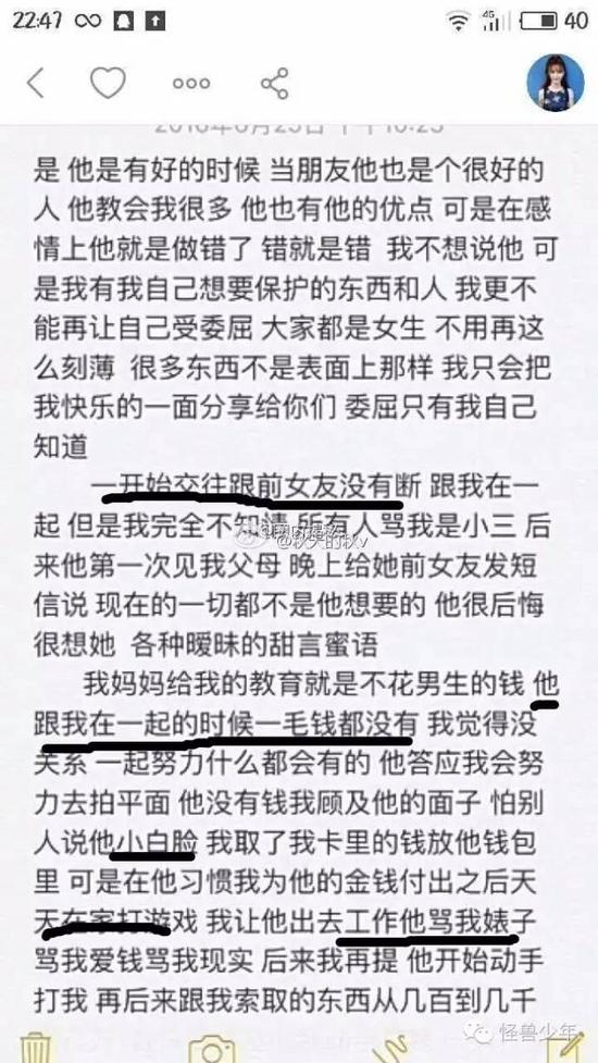韩安冉整容后变成了小鸟依人的小萝莉,马文超从秀恩爱到痛下毒手,最重要的原因就是钱!韩安冉爆料说马文超认识她时一毛钱都没有,自己不挣钱反而问她要钱,不给钱就打,最严重时还打吐血,还拿女方的钱去约炮。对话中还透露,马文超曾经劈腿,还介意她是‘十恶不赦’的整容脸!