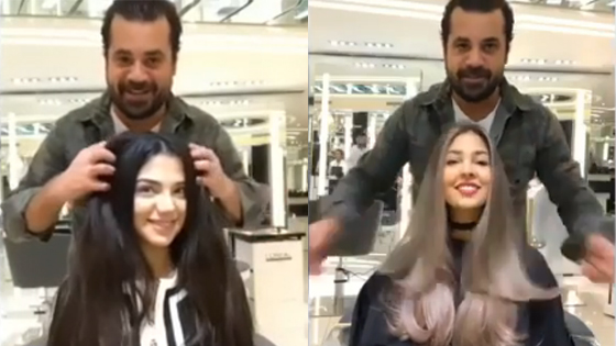 STEP 2 梳子沿着发线向下梳约两个指节的长度,将其拱起,用吹风烘一下定型,坚持3秒再松手。