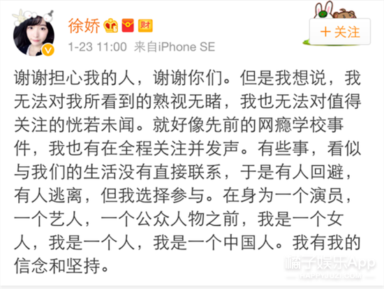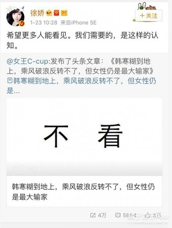 9张徐娇微博怒怼韩寒 指不尊重女性