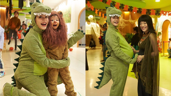 姚晨挺巨肚过万圣节 自侃是吃撑了的母龙