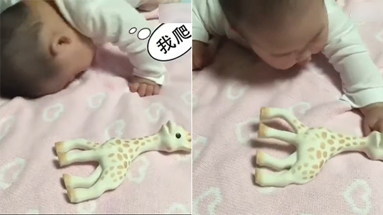伊能静女儿学爬行 口水直流但坚持不放弃