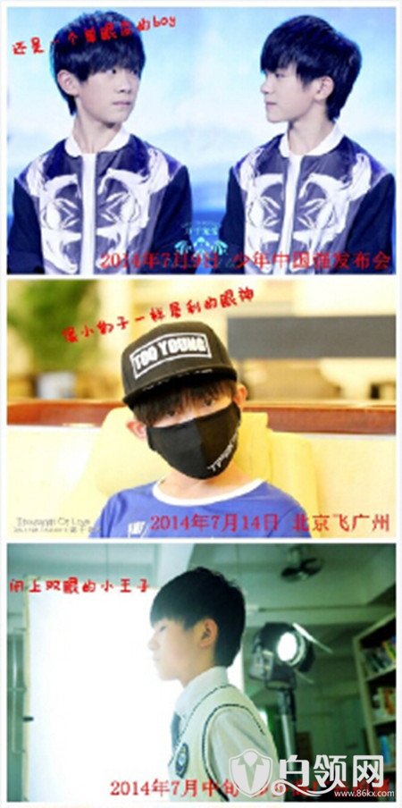 “我最看好的boy”、“眉清目秀的,萌帅萌帅的,感觉越大越man,可是他才14岁啊,千总的步伐太快,我们亲妈粉快跟不上你的节奏啦 ”
