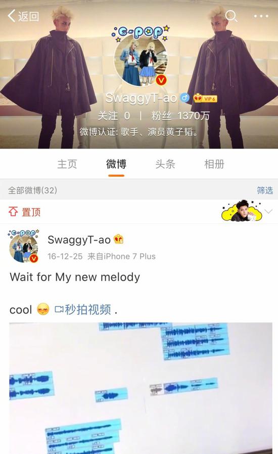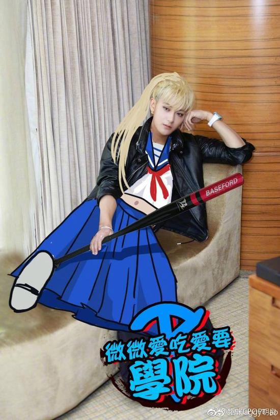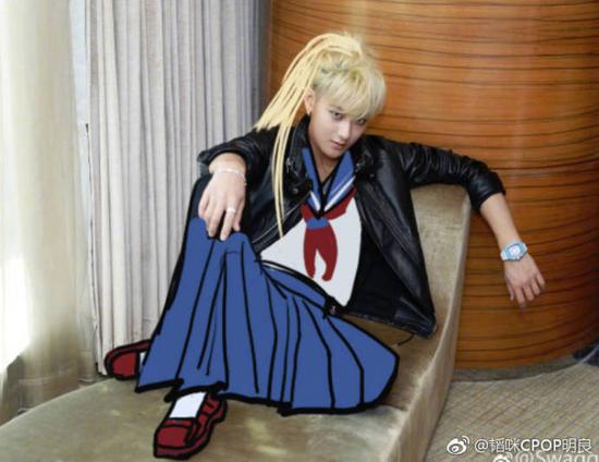 4月16日下午,黄子韬微博连续两次换头像,最后把头像改为自己的水手服美少女PS照。照片中,黄子韬的发型被P成了美少女的长金发,衣服也内嵌了一套系着红领巾的水手服,表情仍旧是冷酷邪魅。