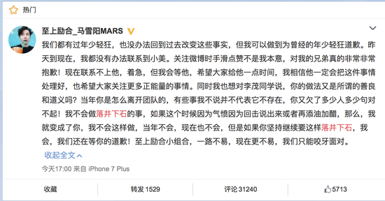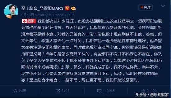 李茂发文后,舆论迅速向他倒戈,粉丝纷纷开始职责马雪阳心机boy虚伪恶心!马雪阳见事态不对~很快发博怼回李茂:我不过是年少轻狂