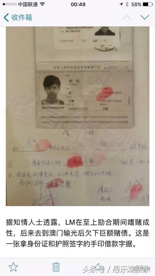 这个李茂也是很棒棒了,赌债还是马雪阳帮忙借钱还的 !仔细看这个图里的相关信息,生日还有签名都是李茂本人的哟!这张图是他们经纪人发的,里面也提到李茂欠钱马雪阳帮忙借钱解决