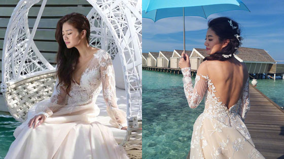6张安以轩婚礼前与闺蜜拍婚纱写真