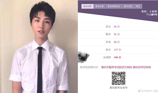 王俊凯高考438分获众人祝福 这个成绩很好吗?