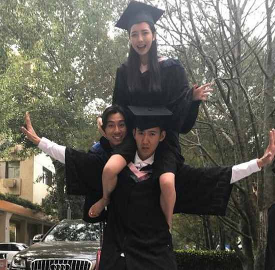 异性缘超好 豆得儿晒毕业照骑男同学肩膀