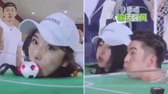 杨幂baby同台竞技桌上足球 偶像包袱全丢