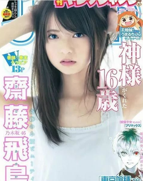 斋藤飞鸟是 1998 年出生,乃木坂 46 的成员,她的美颜不仅被捧做四千年一遇美少女,还被称为是 “ 被神选中的美少女 ”,当然,“ 神选少女 ” 这种称号也只是在某本杂志上的一小句标语,日媒称赞美女的新名词,类似还有 “ 号称汇聚全银河光芒最闪耀的帅哥 ” 等称呼。